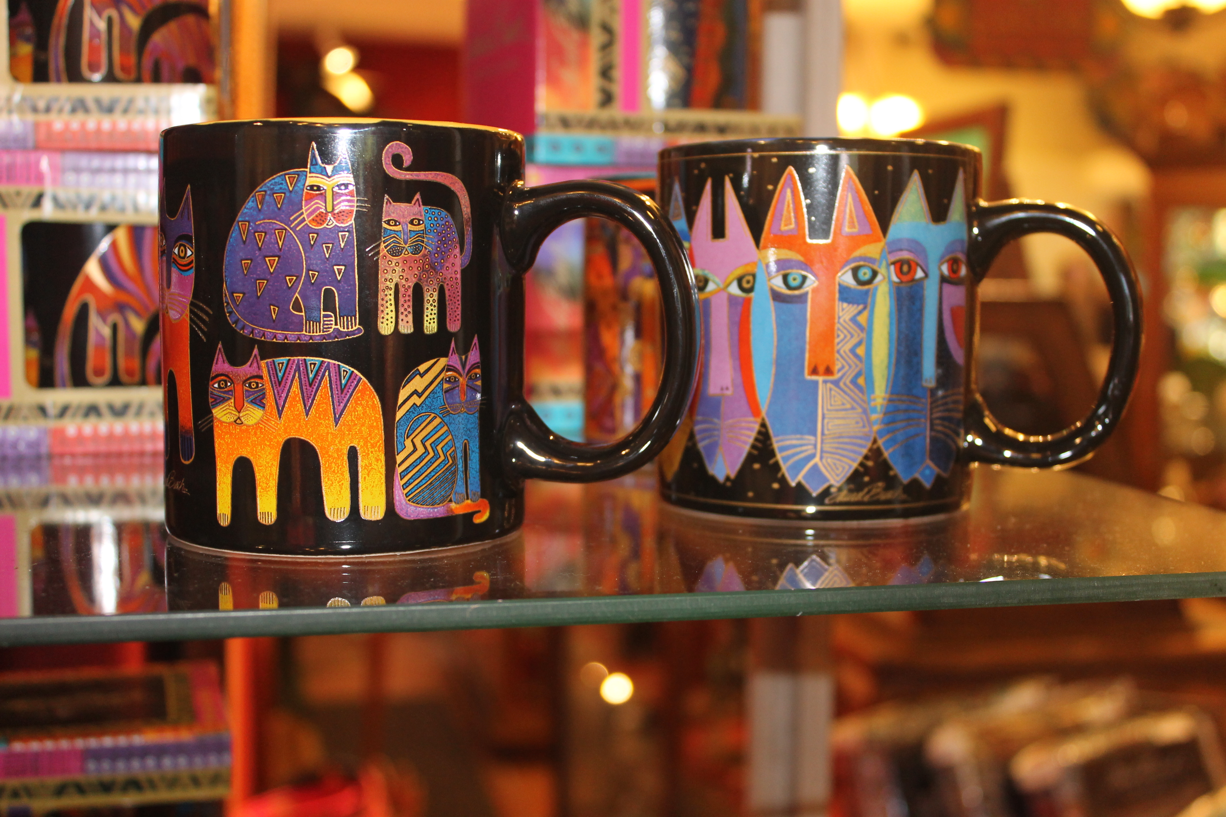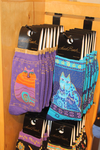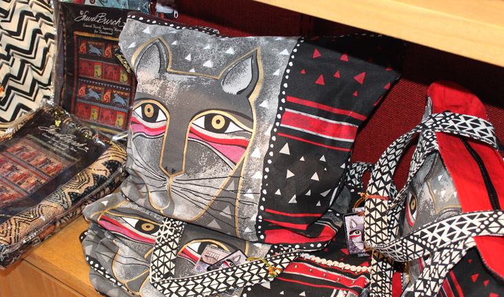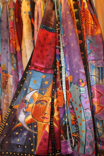 Among the multitudes of treasures at Diane Powers’ locally owned Bazaar del Mundo shops in Old Town is the Laurel Burch Gallerita, bringing a unique variety of designs centered around the well known artist’s passion for vibrant colors, nature and culturally universal art. This shop is dedicated to honoring Laurel’s creativity. Her whimsical pieces include coffee mugs, canvas tote bags, silk scarves, socks, woven pillows and throws, greeting cards, note cards, bookmarks and magnets.